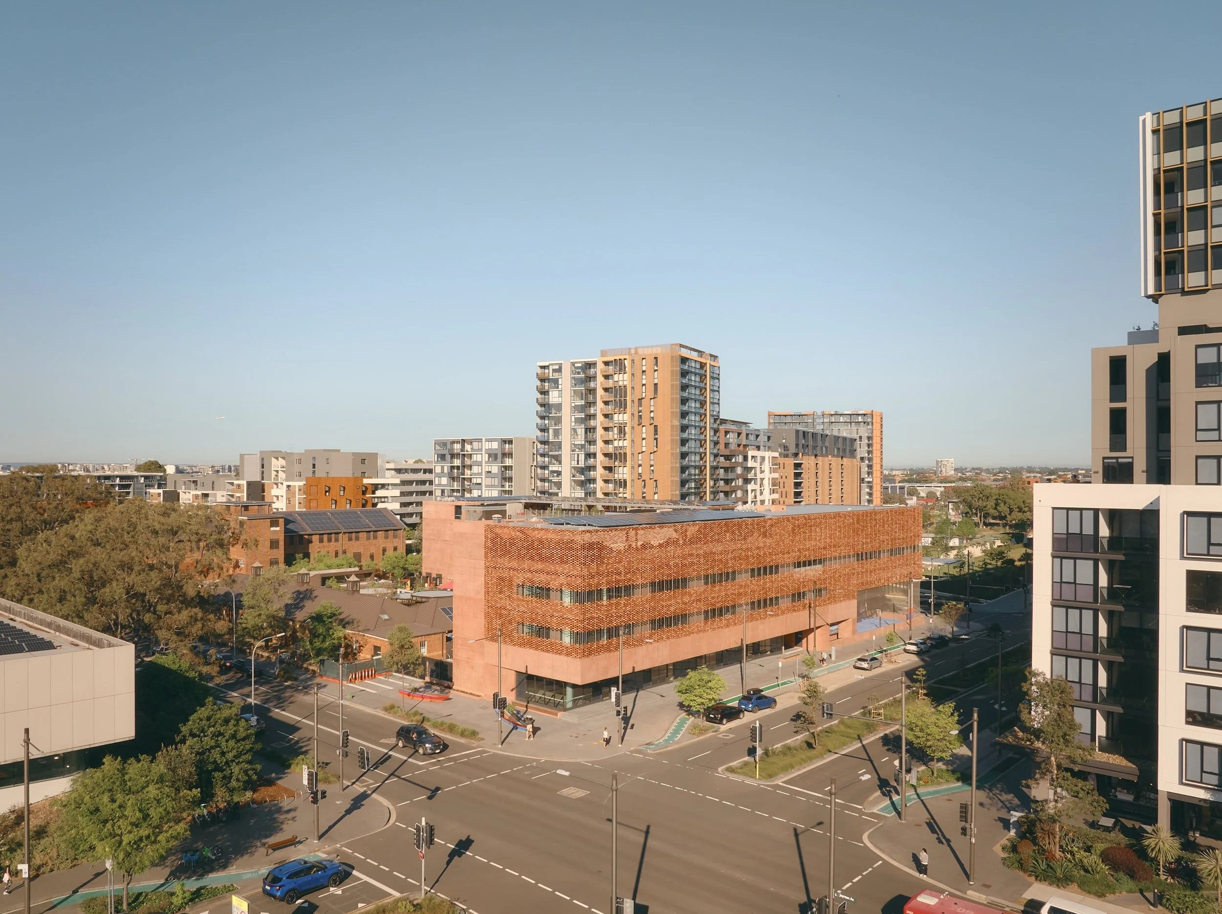 A precast pink base ties the building into its landscape, while the Flexbrick® system introduces rhythm, texture, and a sense of movement above. Having collaborated previously with LOHAS on Maitland Hospital, BVN turned to Flexbrick® early in the design process, confident it was the only system capable of delivering the required balance of durability, dynamism, and contextual sensitivity. From concept to completion, Flexbrick® remained integral to shaping a façade that feels civic, enduring, and deeply connected to its community.